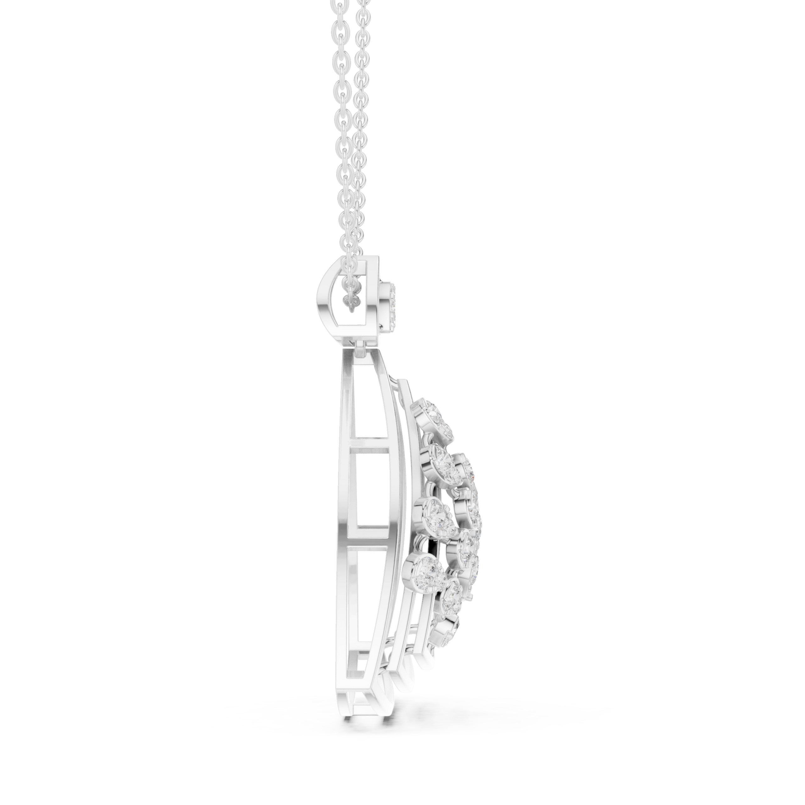 | A pendant crafted with a combination of delicate round stones, offering a subtle sparkle with a clean and modern layout. Its versatile design makes it an excellent choice for layering or solo wear |