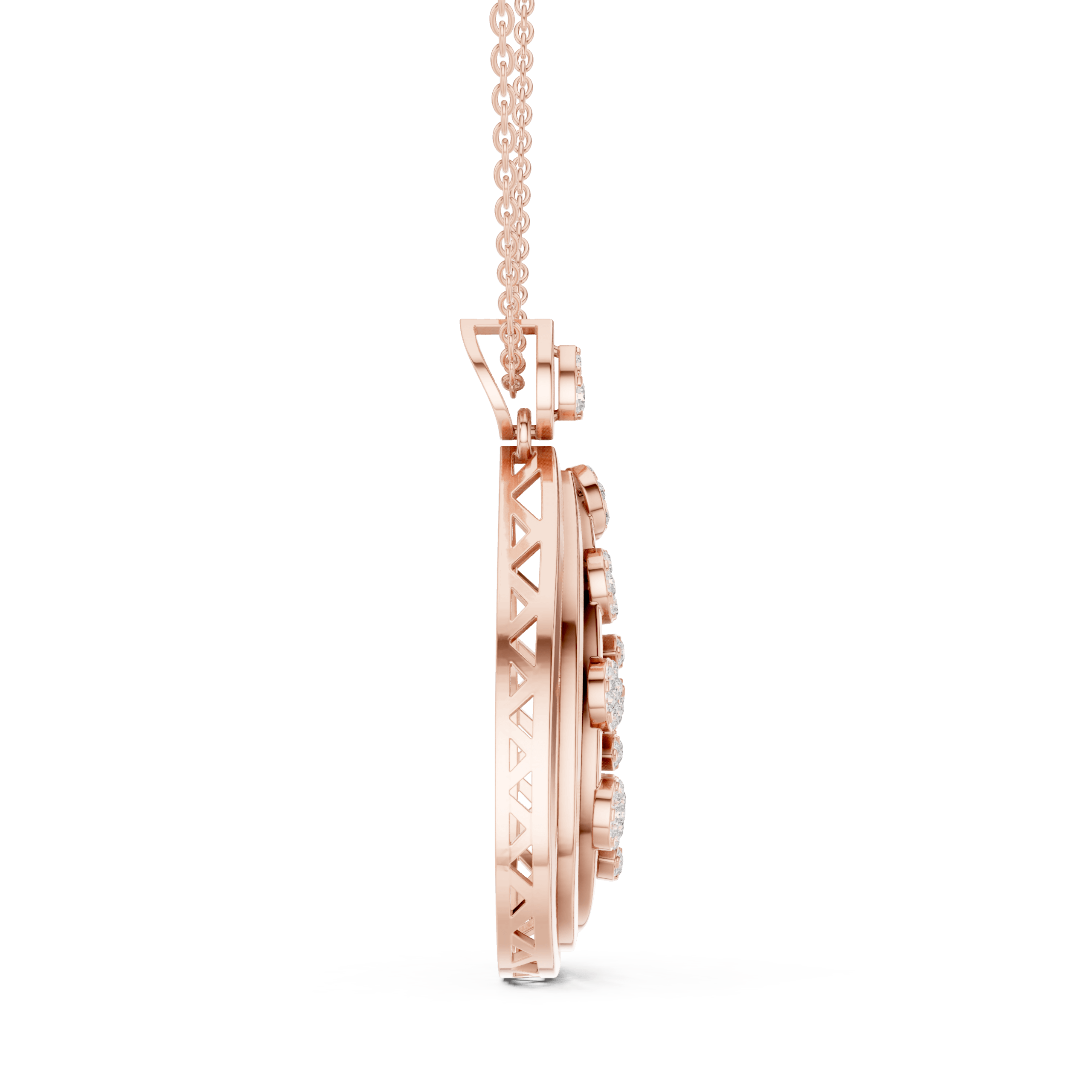 Graceful round diamond pendant with layered detailing, crafted for modern elegance.