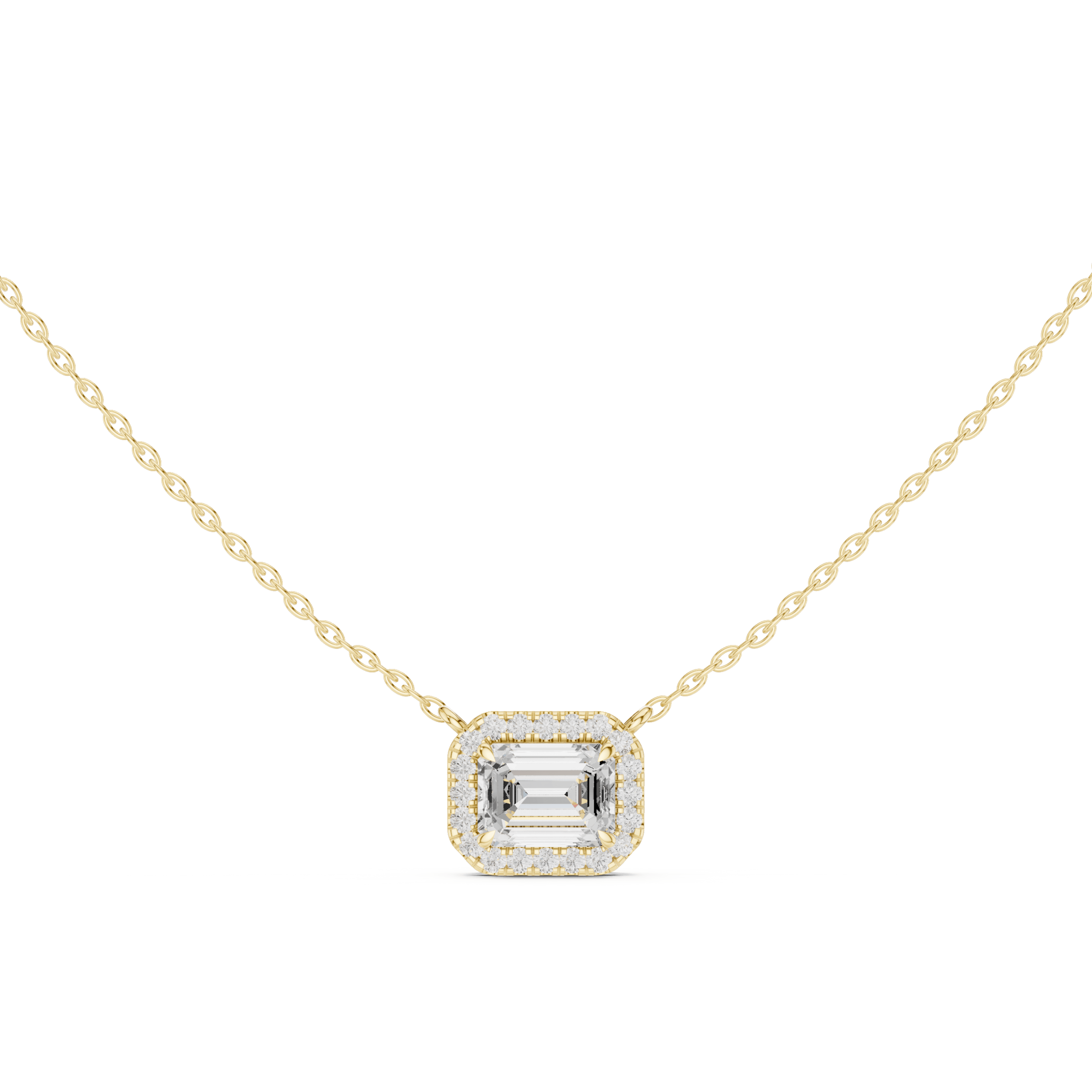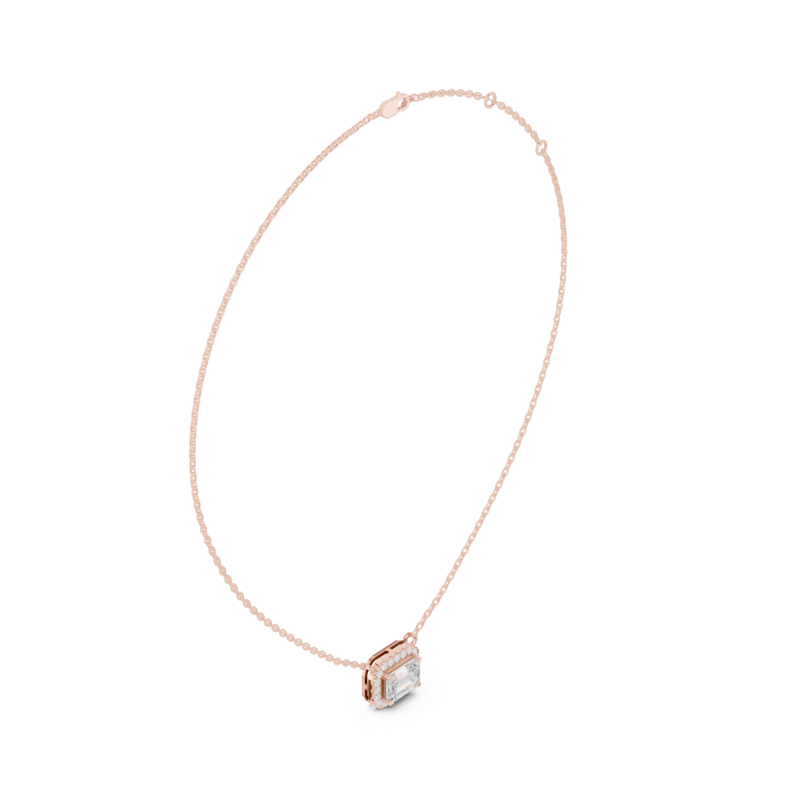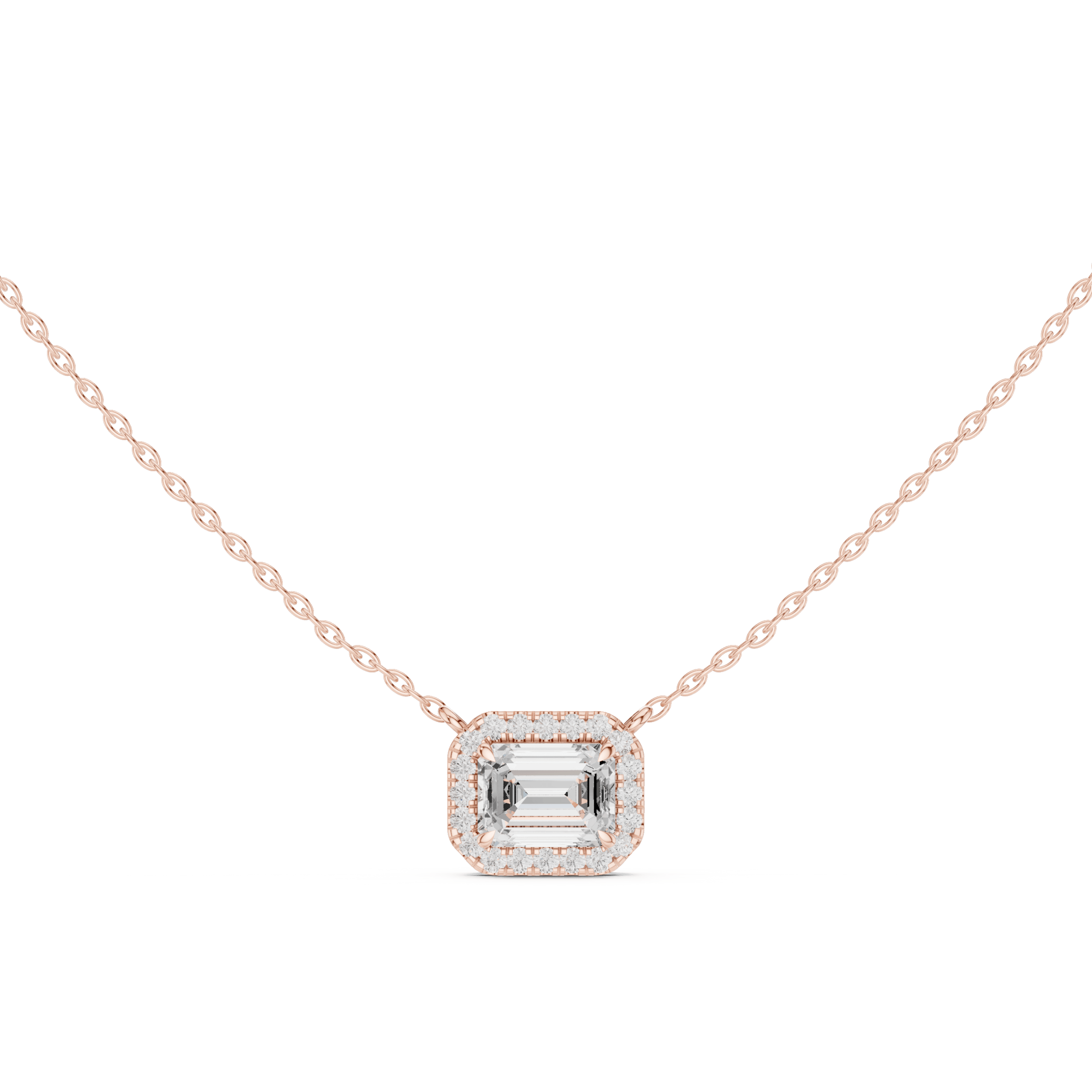 Unique pendant combining round and emerald cut diamonds for a stylish look.